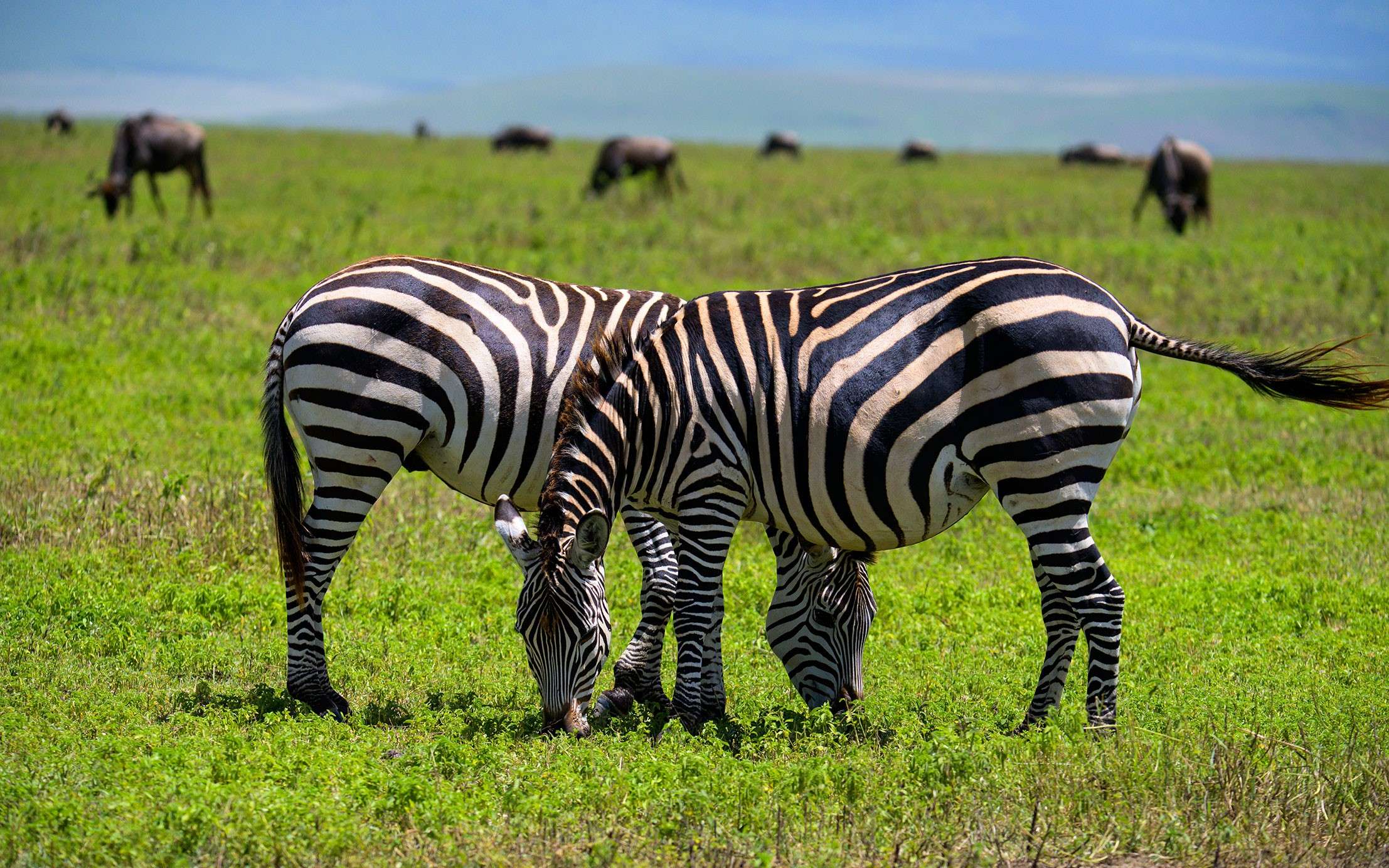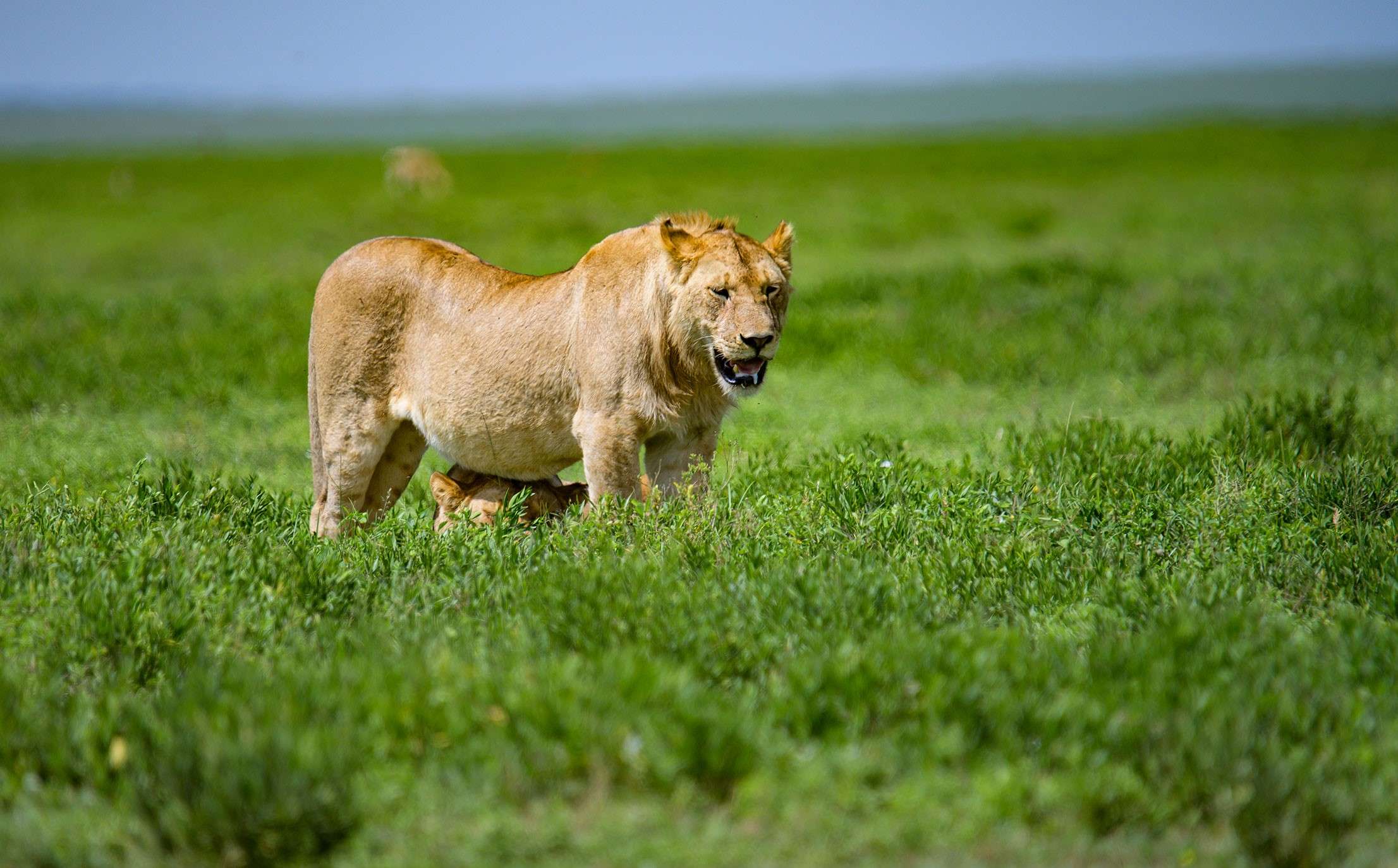 After an early breakfast, depart towards the most famous National park in the World, the Serengeti. The driving itself, although long, is spectacular. You will drive up the crater highlands, making a quick stop at the rim for an out of this world view of Ngorongoro Crater. This will be an unforgettable moment for anyone seeing it for the first time. As you progress well into the Serengeti, you will see why the name means, in local language, “endless plains”. The park has 6,900 sq. mile (18,000 sq. km) and for most of it, the plains will stretch to the horizon defying your senses and perception of distances. It is the home of the Great Migration and to 2 million wildebeests, hundreds of thousands of zebras and all kinds of antelopes including the abundant impalas and Thomson’s gazelles. As for Big Cats and large predators, it’s the place of choice to look out for lions, cheetahs, leopards, hyenas, with many television scenes like the famous river crossings having been filmed in this park. Smaller animals like foxes, mongoose, honey badgers, jackals, monkeys, baboons, rock hyrax and african hares, together with more than 500 species of birds, also inhabit this park.